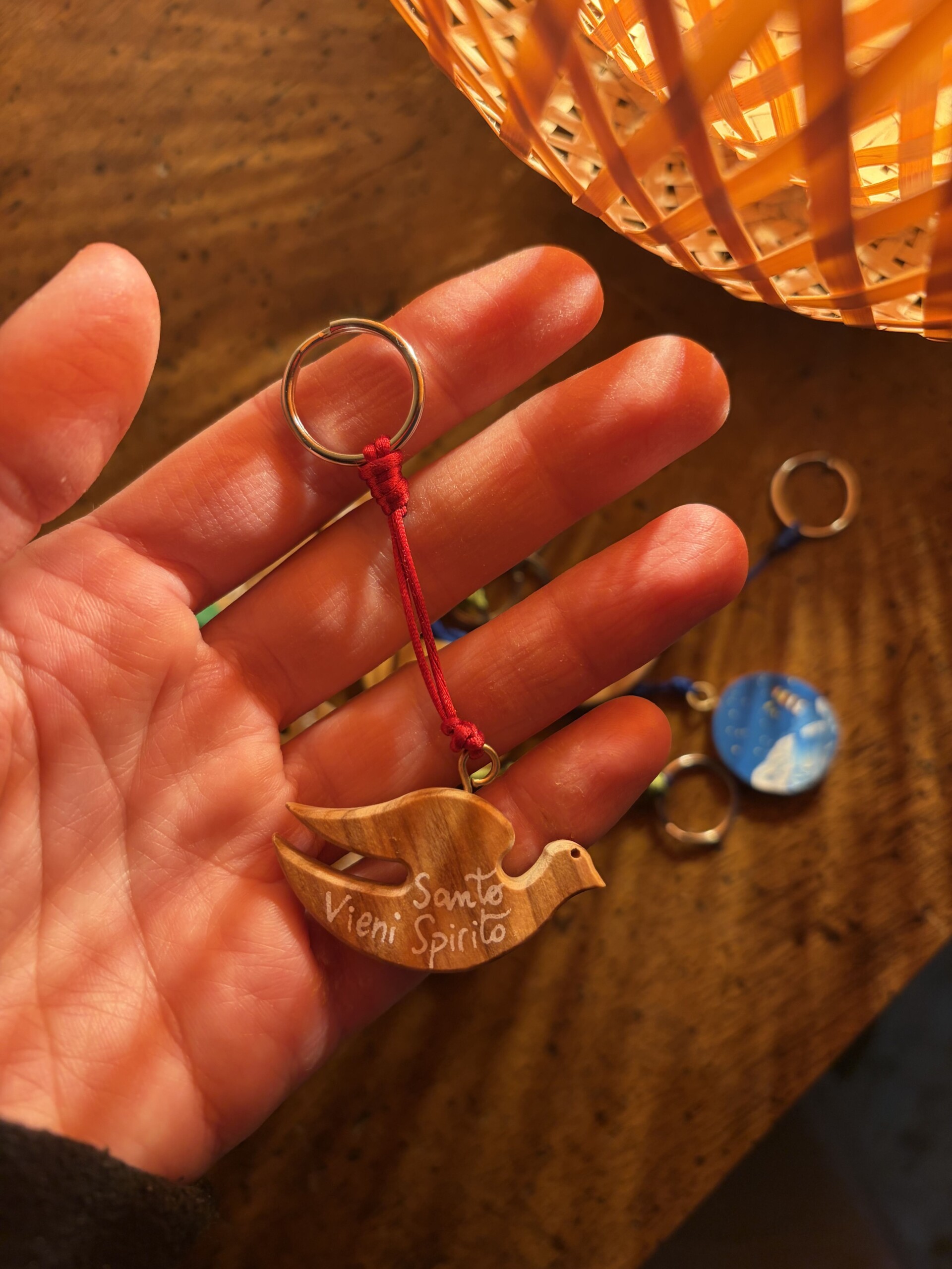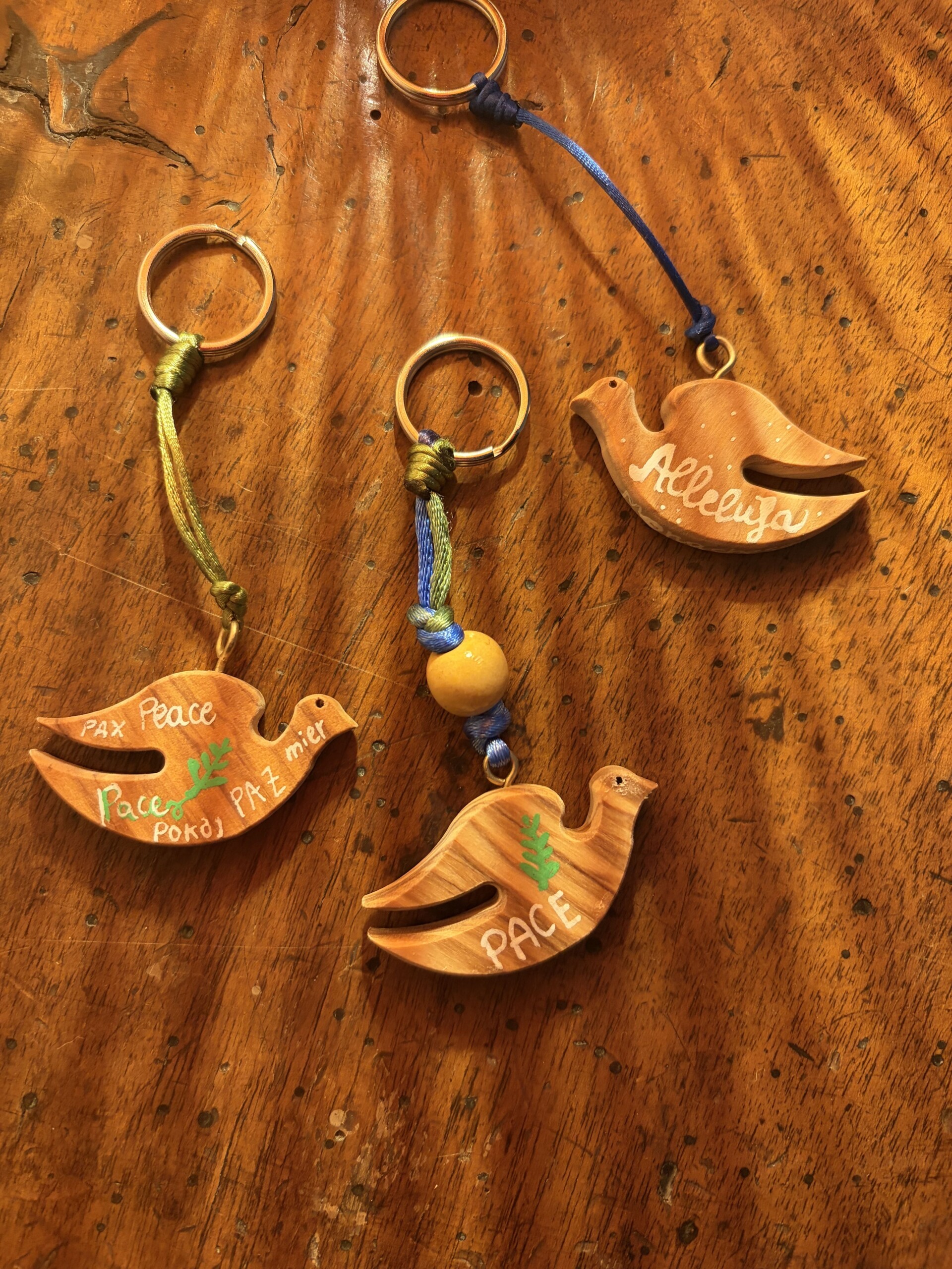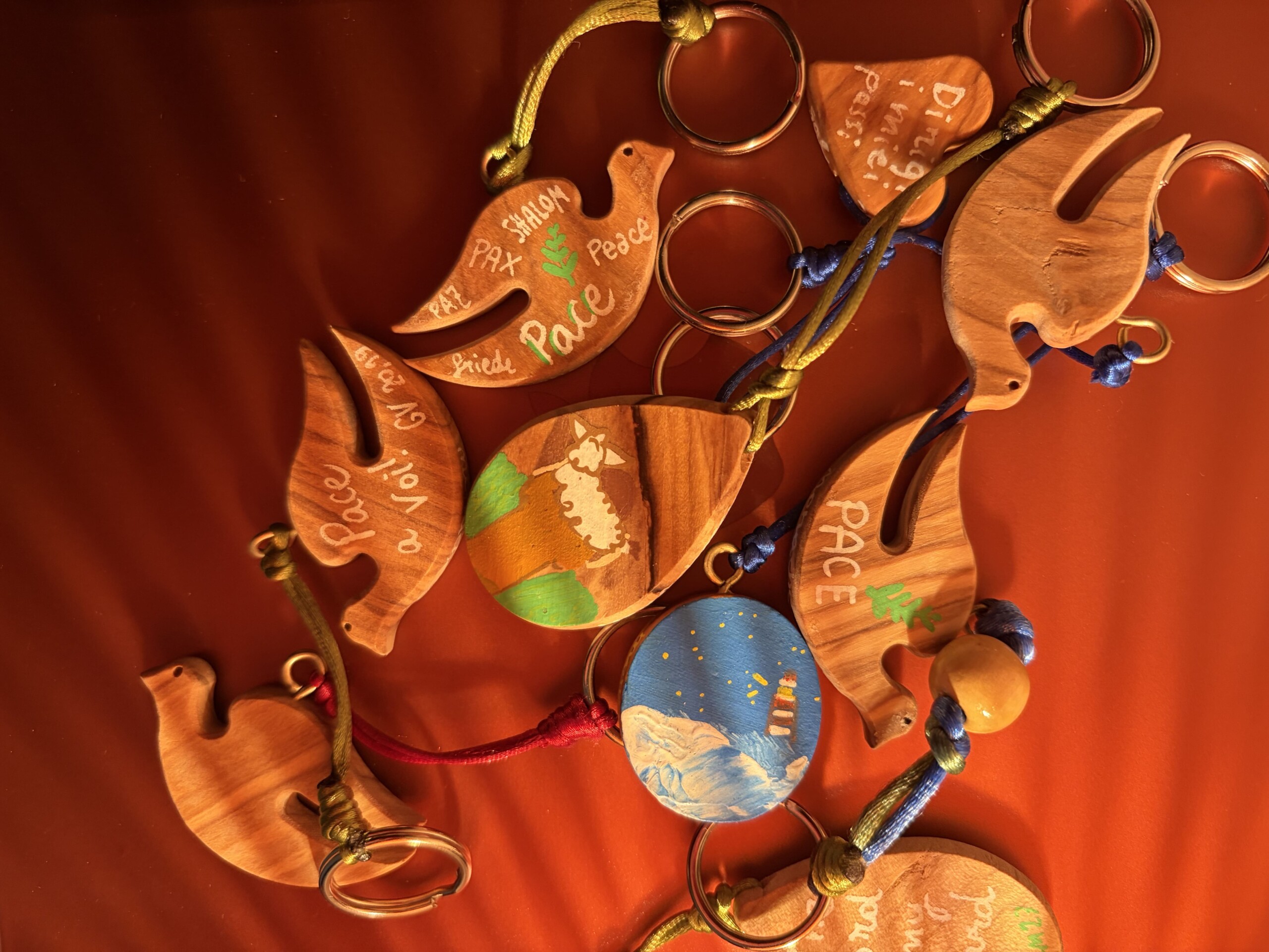 Portachiavi Home / Lavoro di artigianato / Portachiavi «Il Signore veglierà su di te quando esci e quando entri» (Sal 121,8) Materiale Filo coda di topo di diversi colori. Materiale legno d’ulivo Chiedi informazioni don Michele Gianola2026-03-20T16:50:05+01:00Tag: Nodi, portachiavi, preghiera, quotidiano, salmi| < Precedente Icone e iconcine scritte a mano Prossimo > Rosari infilati a mano in legno d'ulivo di Betlemme
